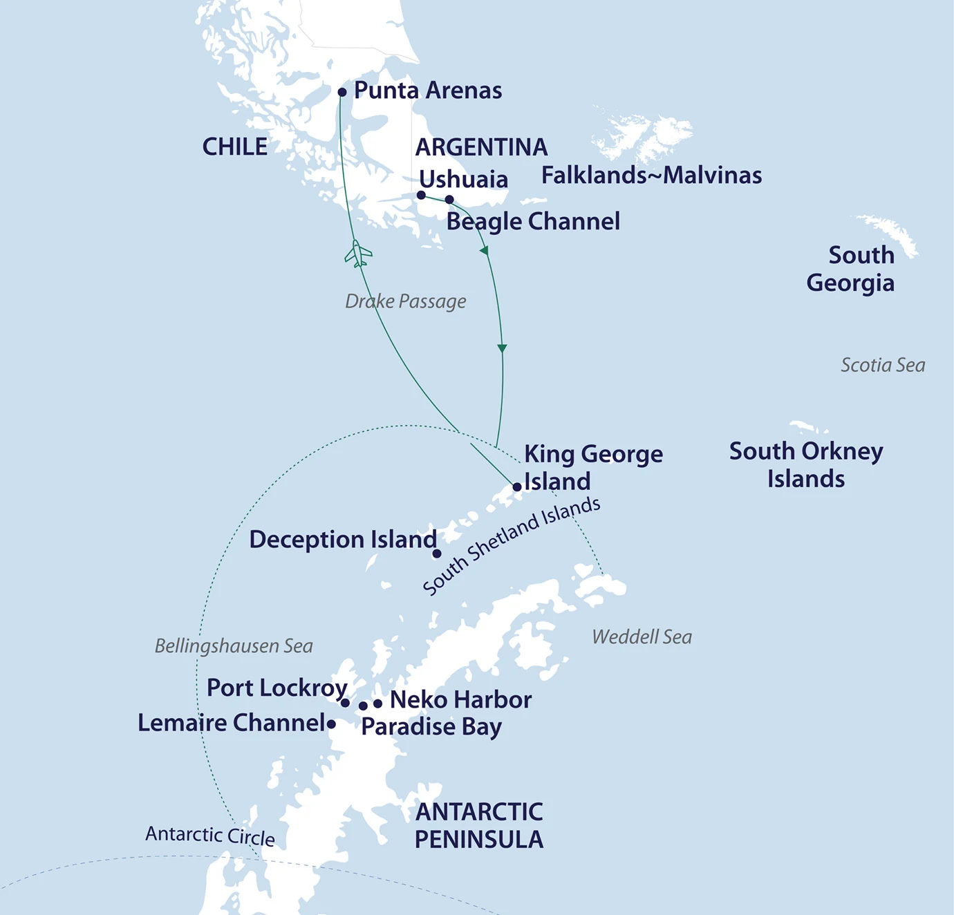 - 12-night expedition cruise on the Across the Antarctic Circle sailing